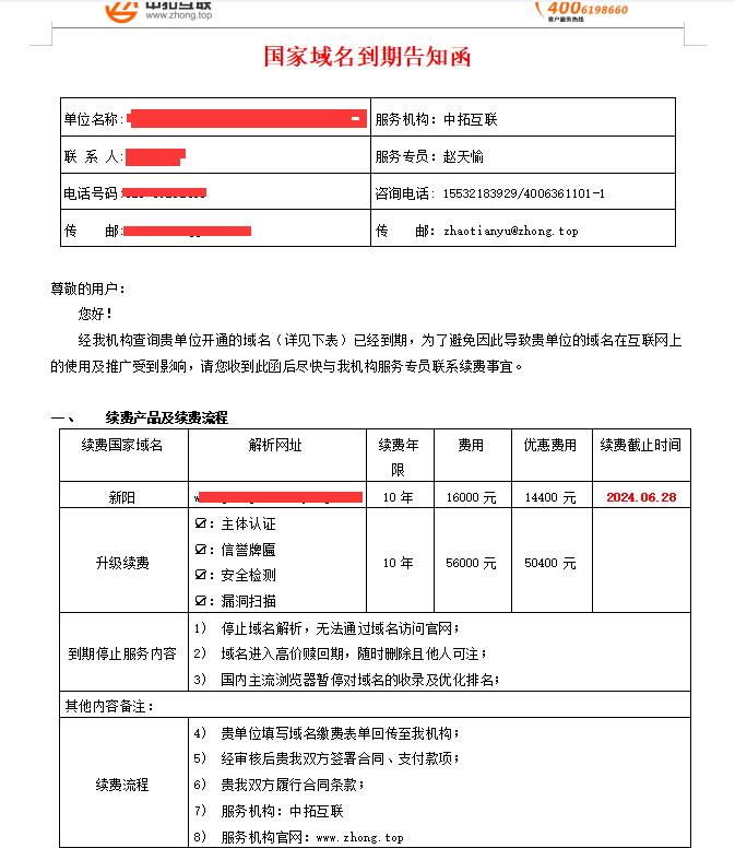 01,2026提醒廣大客戶警惕中拓互聯(lián)國家域名到期續(xù)費套路